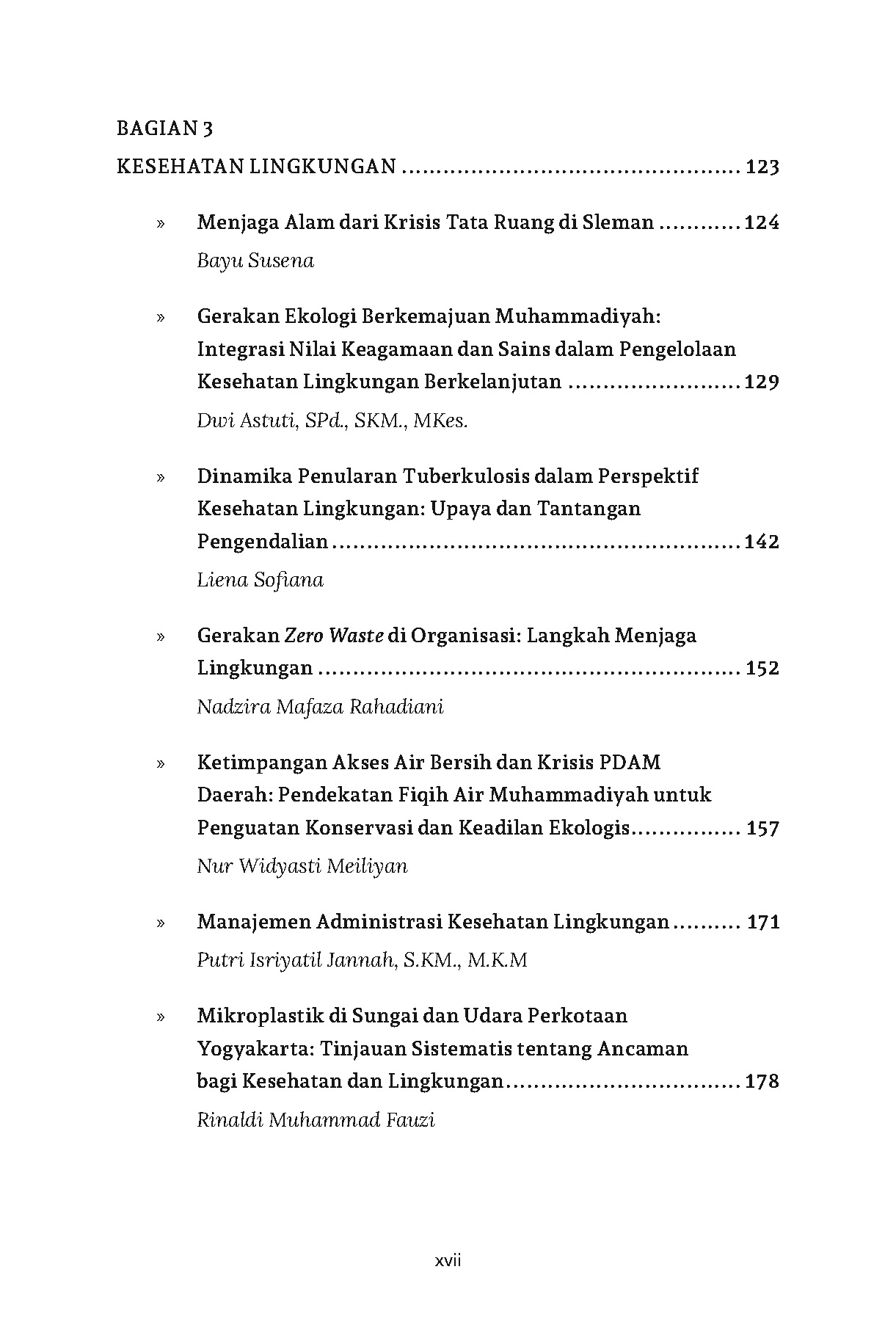 Inilah keistimewaan buku ini karena mengangkat persoalan yang menyentuh kehidupan masyarakat. Setiap tulisan di buku ini akan meningkatkan literasi dan kepekaan para pembaca terhadap lingkungan hidup. Dengan pendekatan ilmiah yang berpadu dengan spirit gerakan, buku ini diharapkan mampu menjembatani dunia akademik dan praksis sosial. Buku ini tidak hanya ditujukan bagi kalangan akademisi dan peneliti, tetapi juga bagi pengambil kebijakan, aktivis lingkungan, pendidik, tenaga kesehatan, serta seluruh warga Muhammadiyah yang memiliki kepedulian terhadap masa depan bumi dan kemanusiaan.
