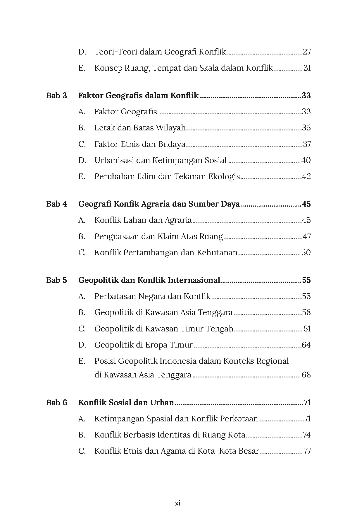 Sebagai buku ajar, penyusunan materi dalam buku ini dirancang secara sistematis dan bertahap untuk mendukung proses pembelajaran di perguruan tinggi. Setiap pembahasan diarahkan untuk membangun pemahaman konseptual sekaligus kemampuan analitis mahasiswa dalam membaca dan memetakan konflik dari perspektif geografis. Dengan pendekatan tersebut, diharapkan buku ini dapat digunakan sebagai referensi utama maupun pendamping dalam mata kuliah yang berkaitan dengan geografi konflik, geografi politik, studi perdamaian, dan kajian sosial lainnya.