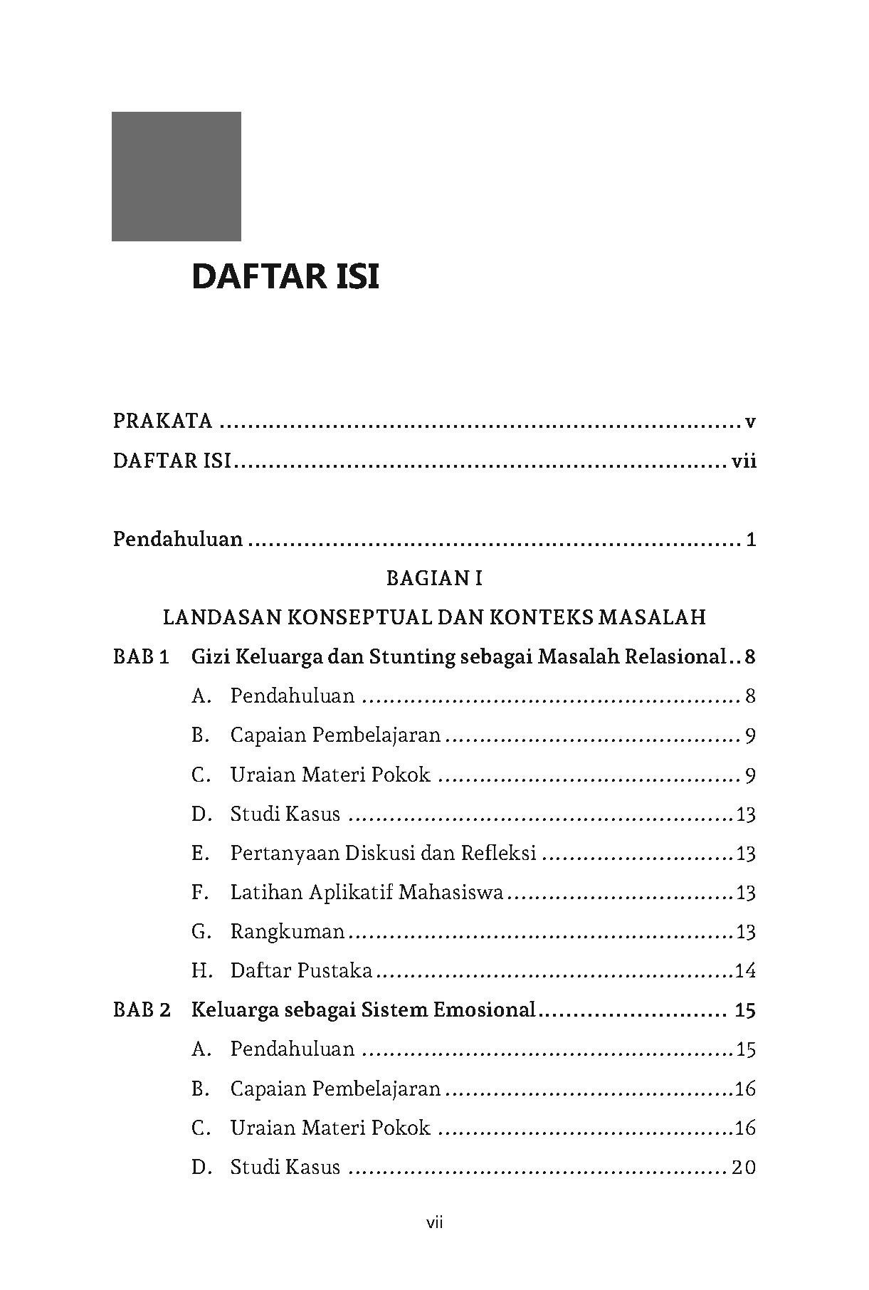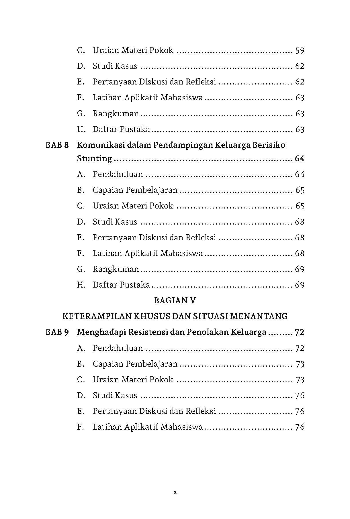 dilengkapi studi kasus, latihan reflektif, serta tools komunikasi yang relevan dengan praktik lapangan. Harapannya, buku ini dapat menjadi bekal bagi calon perawat untuk membangun hubungan yang bermakna dengan keluarga, sehingga intervensi gizi dan pencegahan stunting tidak berhenti pada pengetahuan, tetapi benar-benar bertransformasi menjadi praktik hidup sehari-hari.