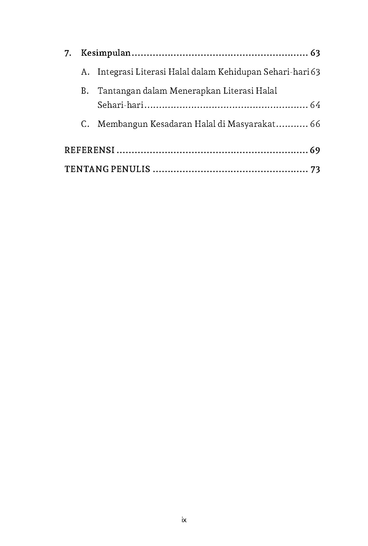 Lebih jauh, buku ini menyoroti literasi konsumen halal dalam menghadapi iklan, pemasaran, dan media sosial, agar konsumen tidak mudah terjebak klaim halal yang menyesatkan. Tidak hanya terbatas pada pangan, buku ini juga memperluas cakupan literasi halal pada bidang fashion dan travel halal sebagai bagian dari gaya hidup modern. Secara keseluruhan, buku ini menekankan integrasi literasi halal dalam praktik sehari-hari untuk membentuk gaya hidup yang sehat, etis, dan berkah.