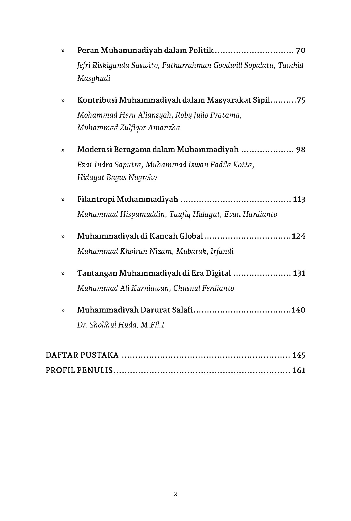 Lebih jauh, buku ini juga mencoba menempatkan Muhammadiyah dalam percakapan yang lebih luas, yakni bagaimana gerakan ini merespons tantangan global, isu kemanusiaan, serta perubahan besar di era digital. Muhammadiyah tidak dibaca sebagai organisasi yang statis, melainkan sebagai gerakan yang terus berproses-berusaha menjadi nilai dasar Islam sambil beradaptasi dengan realitas baru yang kompleks. Dalam konteks inilah, konsep tajdid, wasathiyah, dan Islam Berkemajuan menjadi penting untuk terus didialogkan, bukan hanya dipahami sebagai slogan, tetapi sebagai kerangka berpikir dan bertindak.