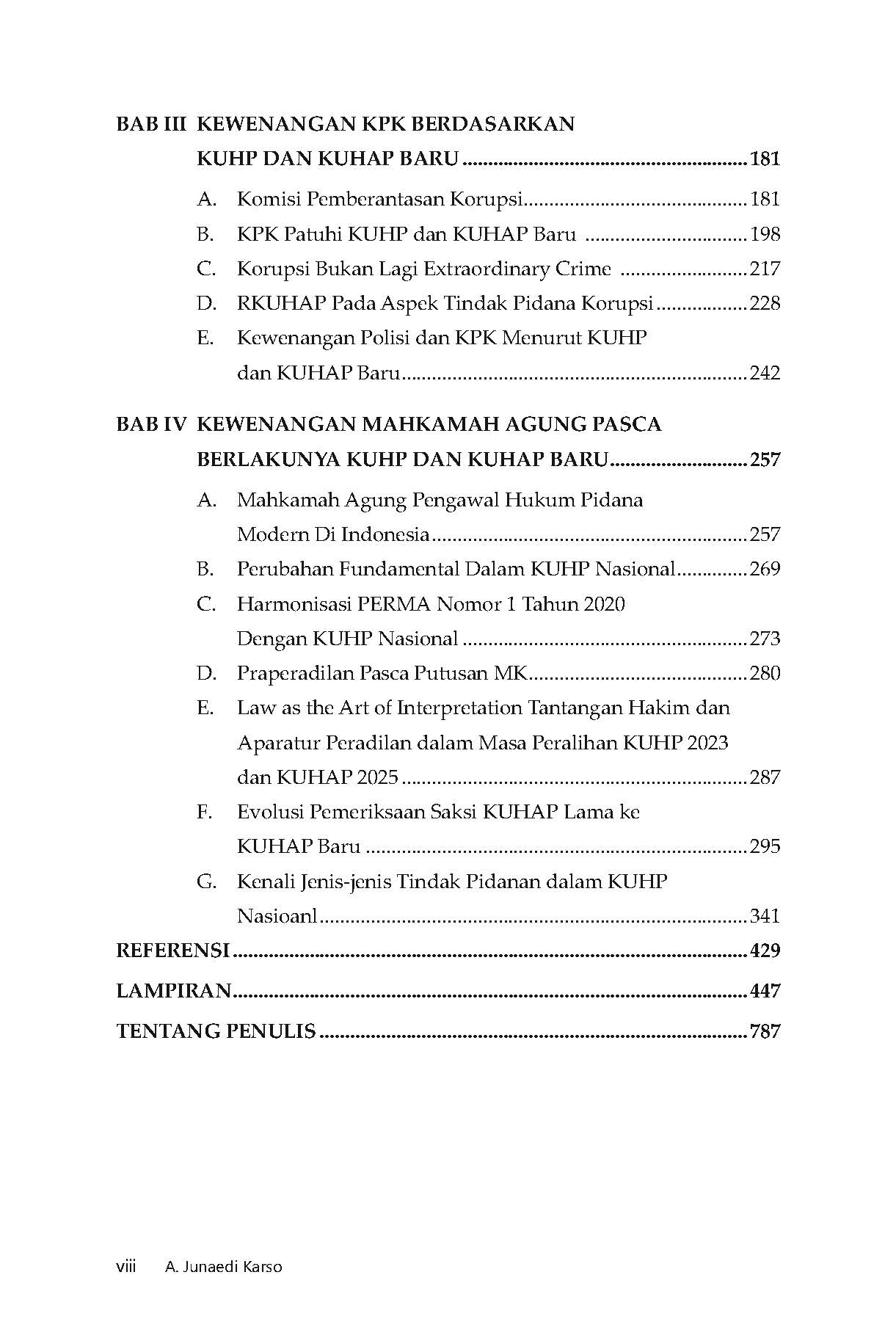 Ditutup dengan bagian Referensi dan Lampiran, buku ini cocok dijadikan pegangan kuliah, rujukan diskusi praktisi, bahan pelatihan internal lembaga, maupun bacaan strategis bagi pengambil kebijakan dan pemerhati hukum. Dengan cakupan yang luas—dari penyelidikan hingga peradilan—buku ini membantu pembaca memahami arah baru sistem peradilan pidana Indonesia: bukan hanya perubahan pasal, tetapi perubahan kewenangan, prosedur, dan konsekuensi praktiknya di lapangan.
